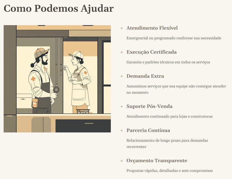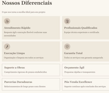 Nosso foco é resolver problemas de forma rápida, limpa e segura — sempre com garantia e mão de obra qualificada. Trabalhamos com comprometimento total em cada projeto.